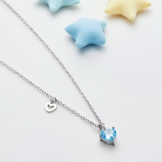 Kinder Halskette Edelstahl Herz mit Zirkonia blau
