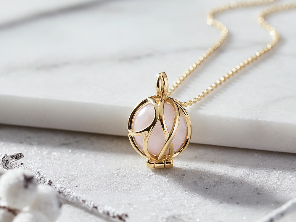 Halskette 925er Silber Engelsrufer Roségold mit Klangkugel Weiß Größe XS