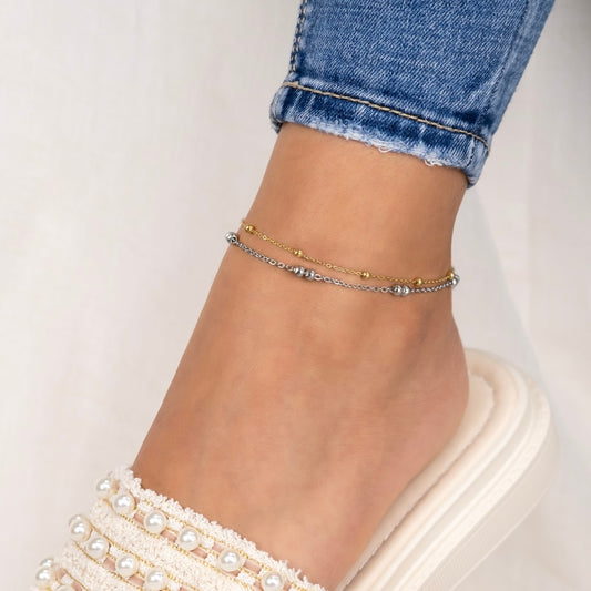 Fußkette Edelstahl Bicolor mit Perlen
