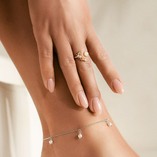 Fußkette 925er Silber mit Süßwasserperlen