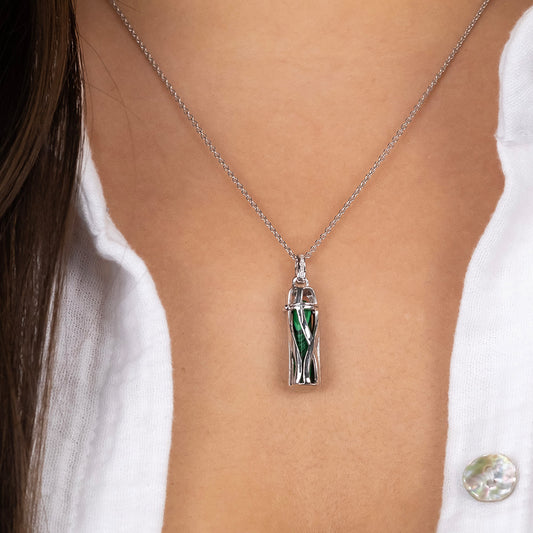 Halskette 925er Silber Powerful Stone mit Kraftstein Malachit Größe S