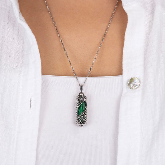 Halskette 925er Silber Paradise mit Kraftstein Malachit