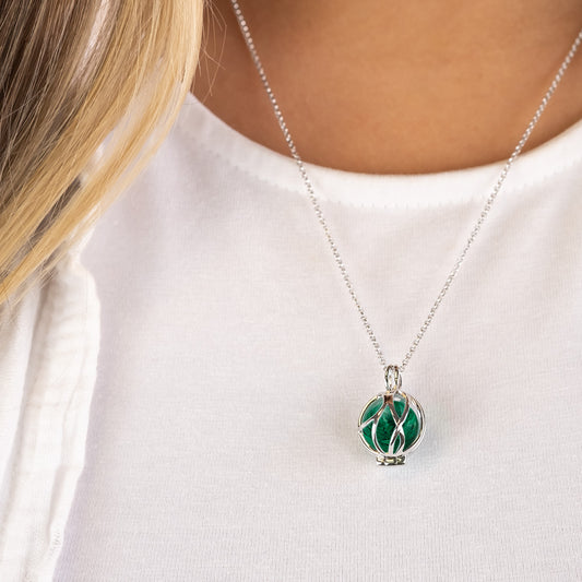 Halskette 925er Silber Powerful Stone mit Kraftstein Malachit Größe M