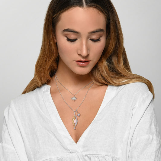 Halskette 925er Silber Windrose Perlmutt Weiß