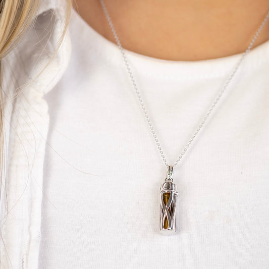 Halskette 925er Silber Powerful Stone mit Kraftstein Tigerauge Größe S