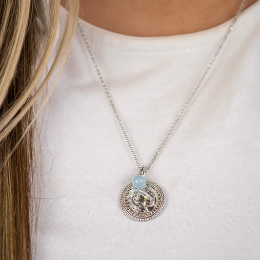 Halskette 925er Silber Fische mit Kraftstein Blauer Achat und Zirkonia