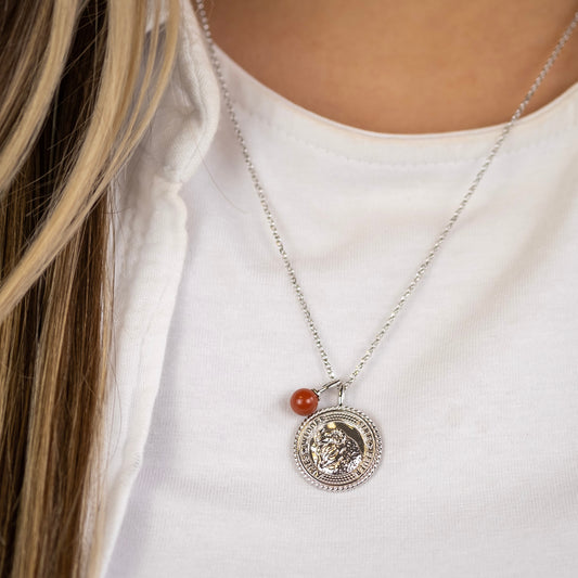 Halskette 925er Silber Powerful Stone mit Kraftstein Roter Jaspis Größe S