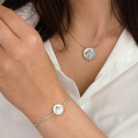 Halskette 925er Silber Lebensbaum Perlmutt Weiß