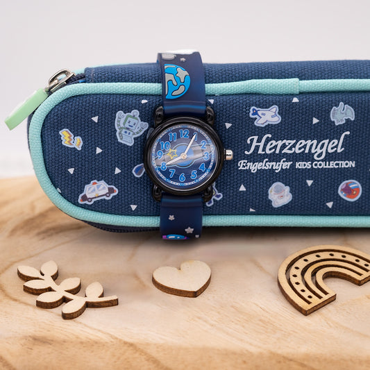 Kinder Uhr Astronaut für Jungen inkl. Schlampermäppchen