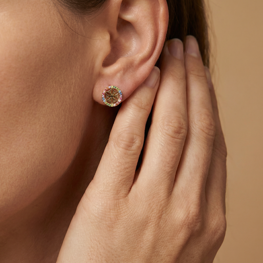Ohrstecker 925er Silber Lebensblume Gold mit Zirkonia Multicolor