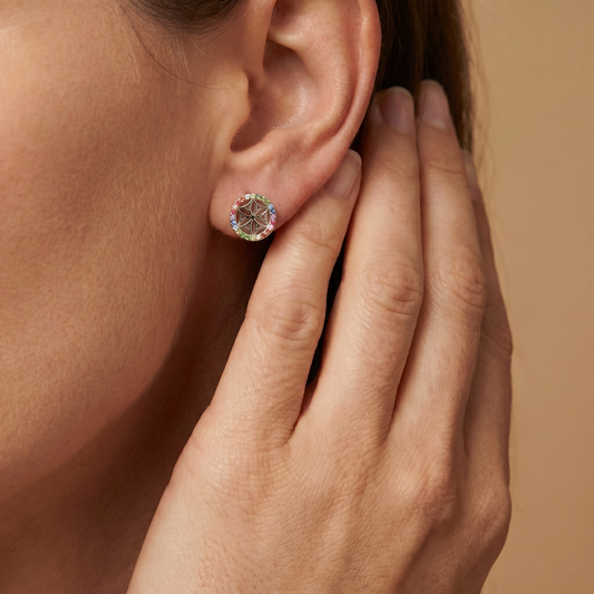 Ohrstecker 925er Silber Lebensblume mit Zirkonia Multicolor