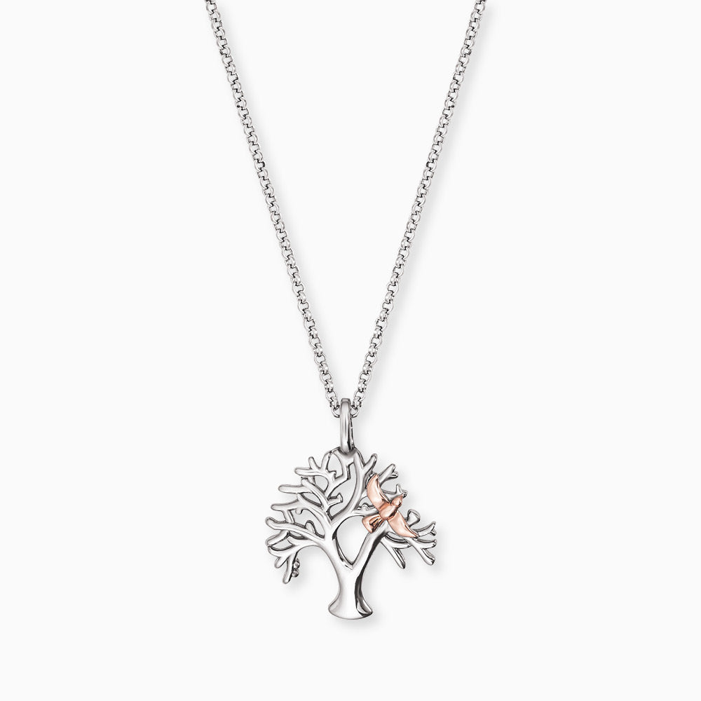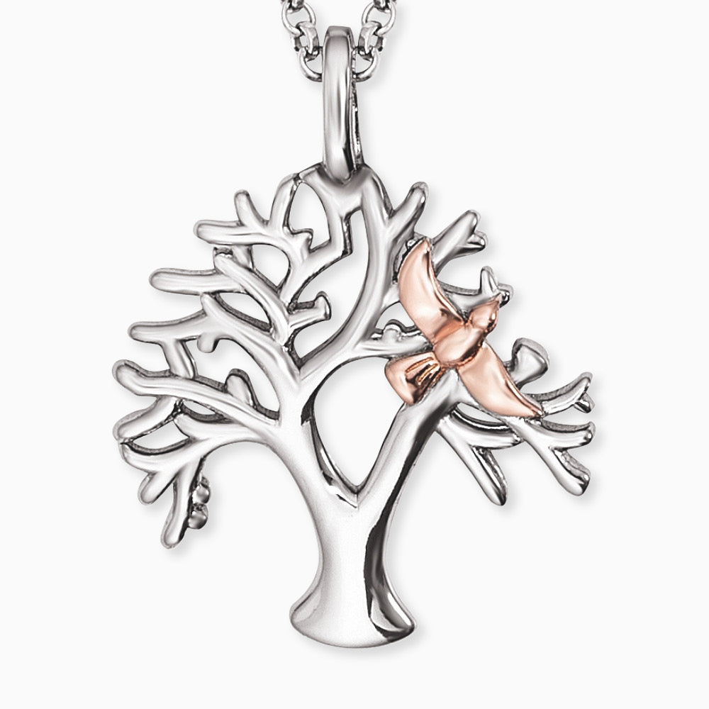 Tree of Life - diese traumhafte Lebensbaum Kette mit Anhänger in Bicolor verzaubert Dich durch die Vielzahl ihrer kleinen liebevollen Details. Der fein ausgearbeitete Lebensbaum mit seinen zarten Ästen beruft sich auf die Kräfte der Natur. Er wird begleitet von einer roséfarbenen Taube. Diese steht für Frieden und Freiheit. Kombiniert mit mehreren Ketten entsteht ein toller Layering-Effekt, der eine wunderschöne Symphonie ergibt. Das zeitlose Schmuckstück wird mit einem Karabinerhaken verschlossen und ist in drei Längen verstellbar.