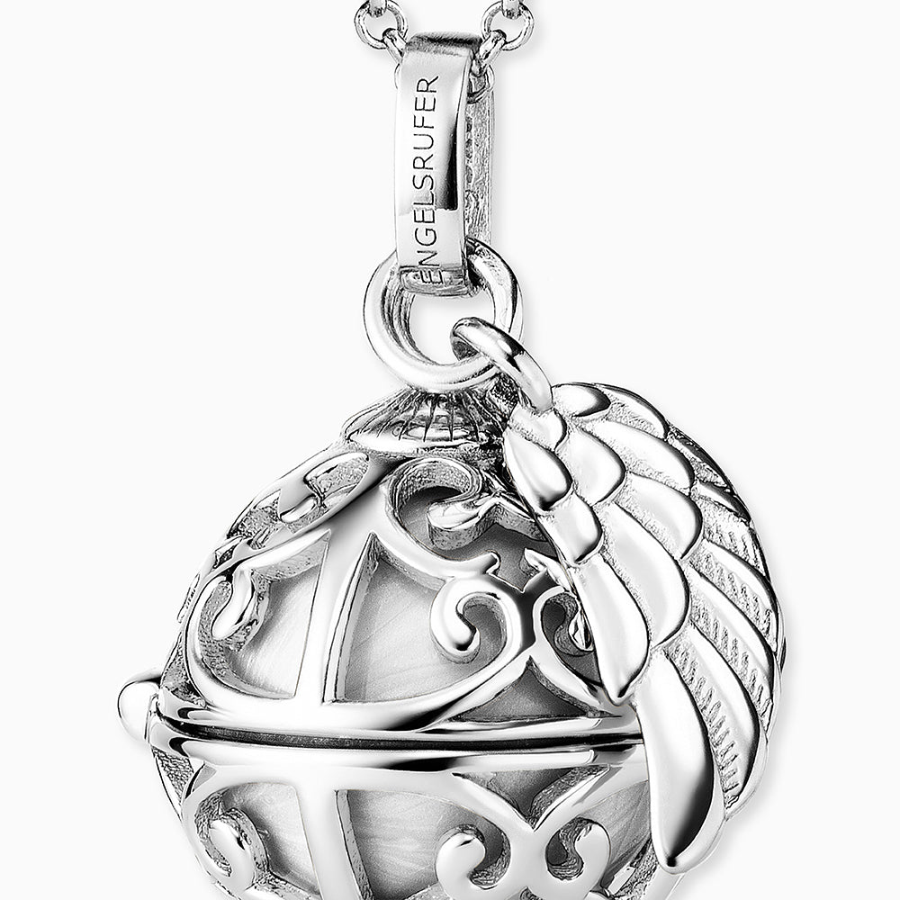 Erlebe das zauberhafte Gefühl der Sicherheit durch einen Schutzengel mit unserer eleganten und zeitlosen Engelsrufer-Halskette mit Anhänger und einem dazu passenden Engelsflügel. Jedes kleine liebevolle Detail wurde sorgfältig von Hand gefertigt, um Dich zu verzaubern und Deinen Engel zu rufen. Durch das zarte Muster des handgefertigten Körbchens wird die inliegende Klangkugel perfekt in Szene gesetzt. Diese kann einfach ausgetauscht werden, um jedem Outfit einen neuen Look zu verleihen.