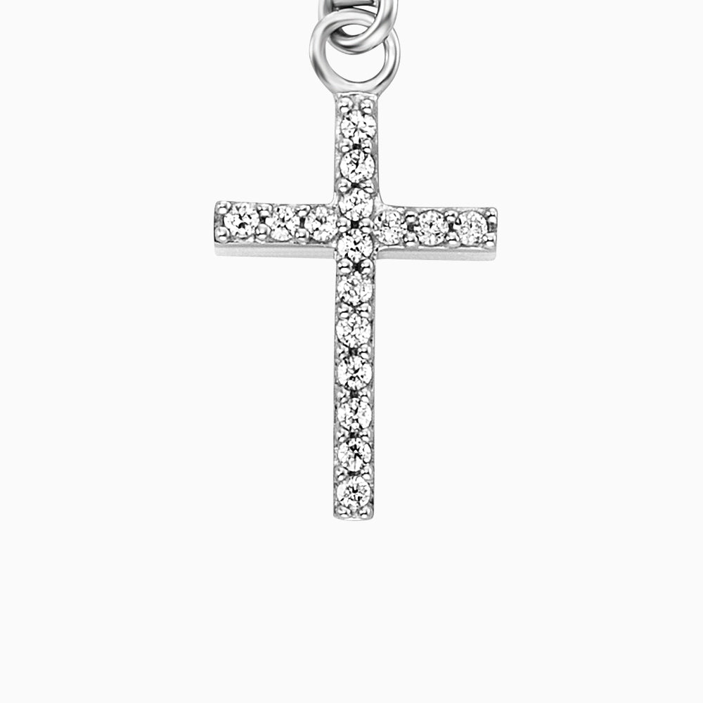 Dein Schutzengel für die Ewigkeit - dieser bezaubernde Charm in Kreuzform bietet die optimale Grundlage für individuelle Gestaltungsmöglichkeiten. Das Kreuz verbreitet Reinheit und bezaubert mit seiner positiven Wirkung. Variiere mit verschiedenen Charm Anhängern und kreiere so jeden Tag einen neuen, unverwechselbaren Look. Ein besonderes Highlight sind die edel schimmernden synthetischen Zirkonia Steine. Denn was könnte femininer sein als strahlend schöne Kristalle umgeben von klassischem Silber.