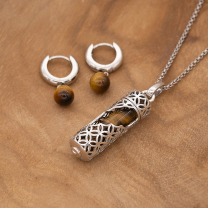 Der Kraftstein kann nach individuellem Befinden und Belieben ausgetauscht werden. Das silberne Körbchen umschließt den Kraftstein schützend und besticht durch das wunderschöne Muster der Lebensblume. Die Lebensblume überzeugt durch ihre kraftvolle Formensprache und schenkt Dir Harmonie und Ausgeglichenheit.