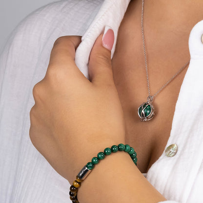 Deine persönlichen Kraftsteine Malachit und Tigerauge, gemeinsam verbunden in einem filigranen Power-Armband aus echten Natursteinen der Powerful Stone Kollektion.