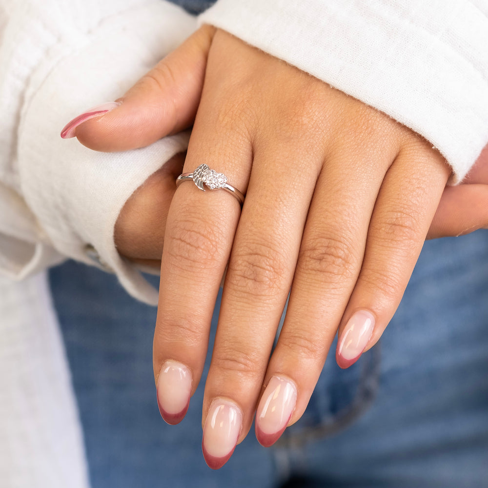 With Love - dieser wundervolle Herzflügel Ring ist für einen ganz besonderen Menschen gedacht und verleiht Eleganz, wunderschöne Weiblichkeit und strahlende Jugend. Der schützende Flügel soll Dir Türen im Leben öffnen, das Herz schenkt Dir Liebe. Ein besonderes Highlight sind die edel schimmernden synthetischen Zirkonia Steine. Denn was könnte femininer sein als strahlend schöne Kristalle umgeben von klassischem Silber. Kombiniert mit mehreren Anhängern und Ketten entsteht ein toller Layering-Effekt, der als Duo, Trio oder Quartett eine wunderschöne Symphonie ergibt.