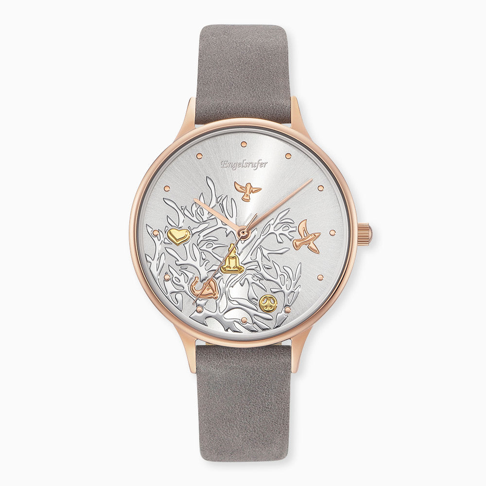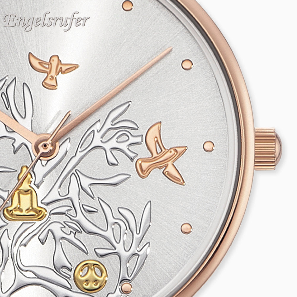 Alle Engelsrufer Uhren sind aus hochwertigem Edelstahl. Die als weitere Veredelung aufgebrachte Roségold-Ionenplattierung schenkt dem Schmuckstück den unverwechselbaren sanften Farbton und einen angenehmen Tragekomfort. Alle Uhren sind nickelfrei und somit auch für Allergiker hervorragend geeignet.