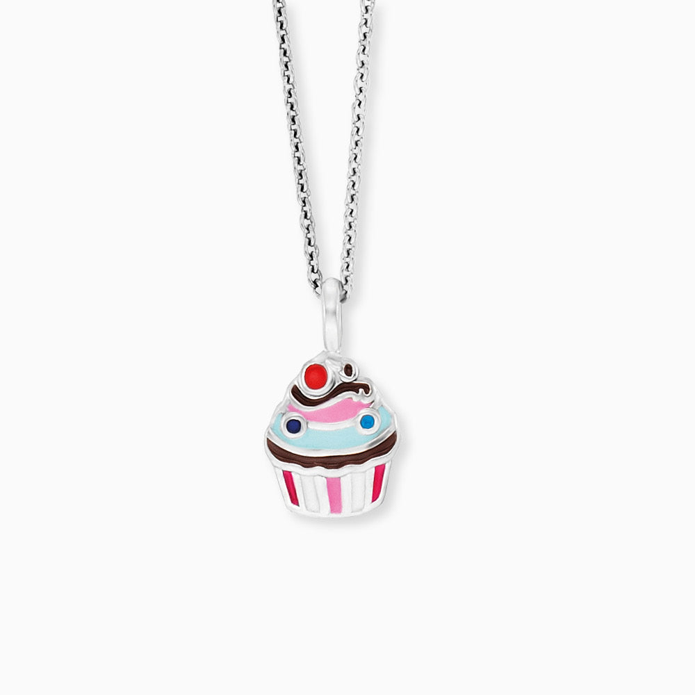 Kinder Halskette 925er Silber Muffin mit Emaille