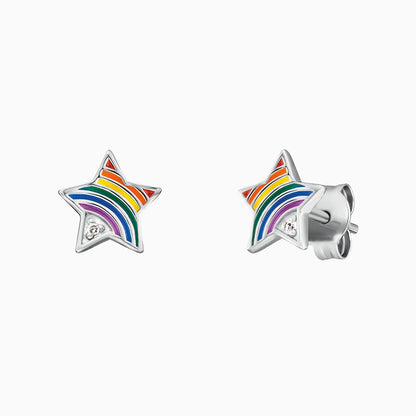 Kinder Ohrringe Edelstahl Stern Regenbogen mit Zirkonia