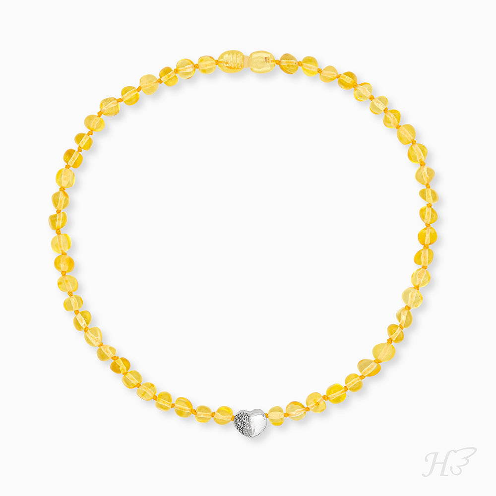 Hinweis zur Sicherheit: Bernsteinketten sind Schmuckstücke, kein Spielzeug. Sie dürfen nur unter Aufsicht von Erwachsenen getragen werden.