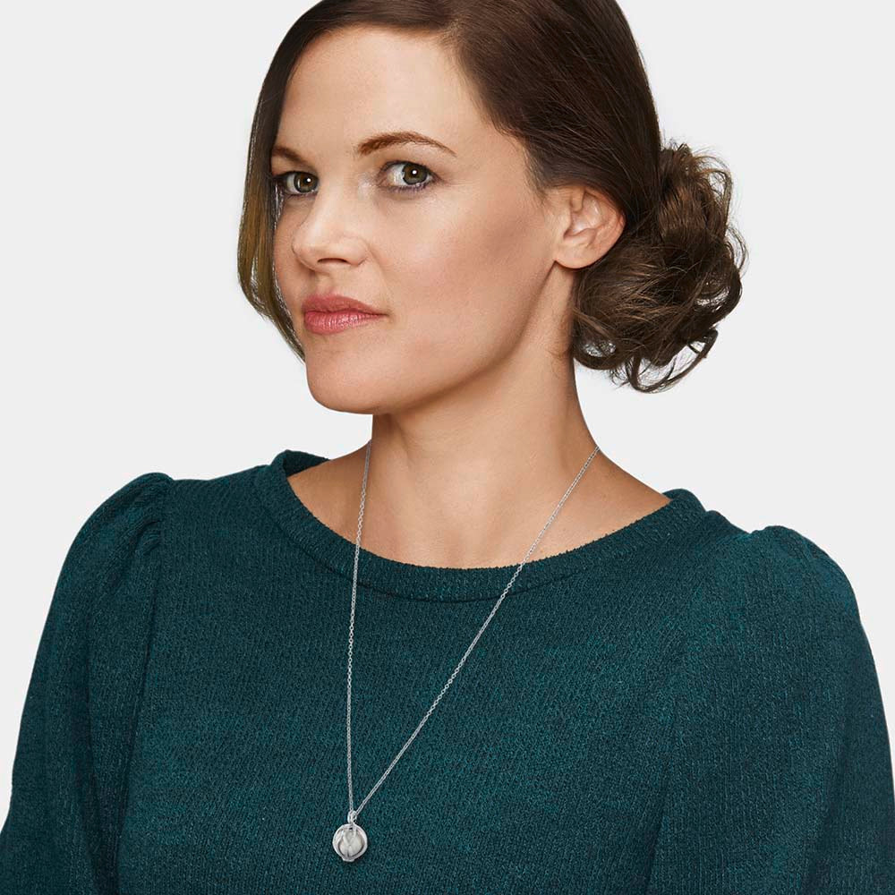 Der traumhafte Paradise verzaubert Dich durch die Vielzahl seiner kleinen liebevollen Details. Durch das zarte Muster des Anhängers wird die innliegende farbige Klangkugel perfekt in Szene gesetzt. Öffne das handgefertigte Körbchen und befülle es mit Deiner Lieblings-Klangkugel. Durch die Vielzahl an Variationsmöglichkeiten erhältst Du dadurch jeden Tag einen neuen Look. Mit seinem zarten Klang ruft er Deinen ganz persönlichen Schutzengel zu Dir und sorgt für Harmonie und Ausgeglichenheit. Ein besonderes Highlight sind die edel schimmernden synthetischen Zirkonia Steine. Denn was könnte femininer sein als strahlend schöne Kristalle umgeben von klassischem Silber.