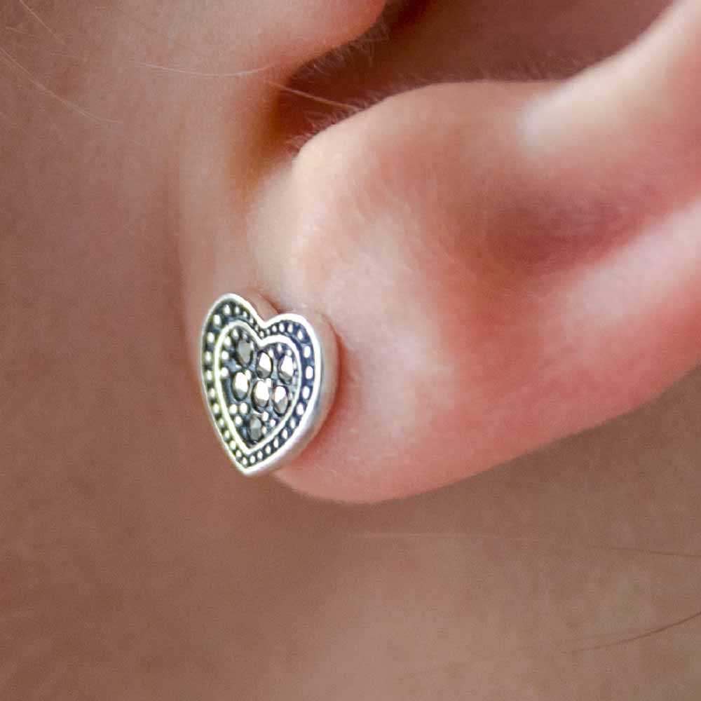 With Love - diese wunderschönen Engelsrufer Ohrstecker mit Herzen sind mit funkelnden Markasiten besetzt. Als klassischer Heilstein, der Körper und Geist bei der Regeneration unterstützt, schenkt er neue Hoffnung, Optimismus und Gefühlsreichtum. Die Ohrstecker sind für einen ganz besonderen Menschen gedacht und strahlen Eleganz, wunderschöne Weiblichkeit und strahlende Jugend aus. Die Ohrstecker sind perfekt mit einer Vielzahl unserer Schmuckstücke kombinierbar.
