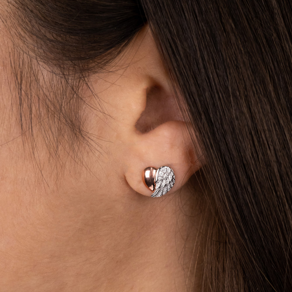 Ohrstecker 925er Silber Herzflügel Bicolor mit Zirkonia