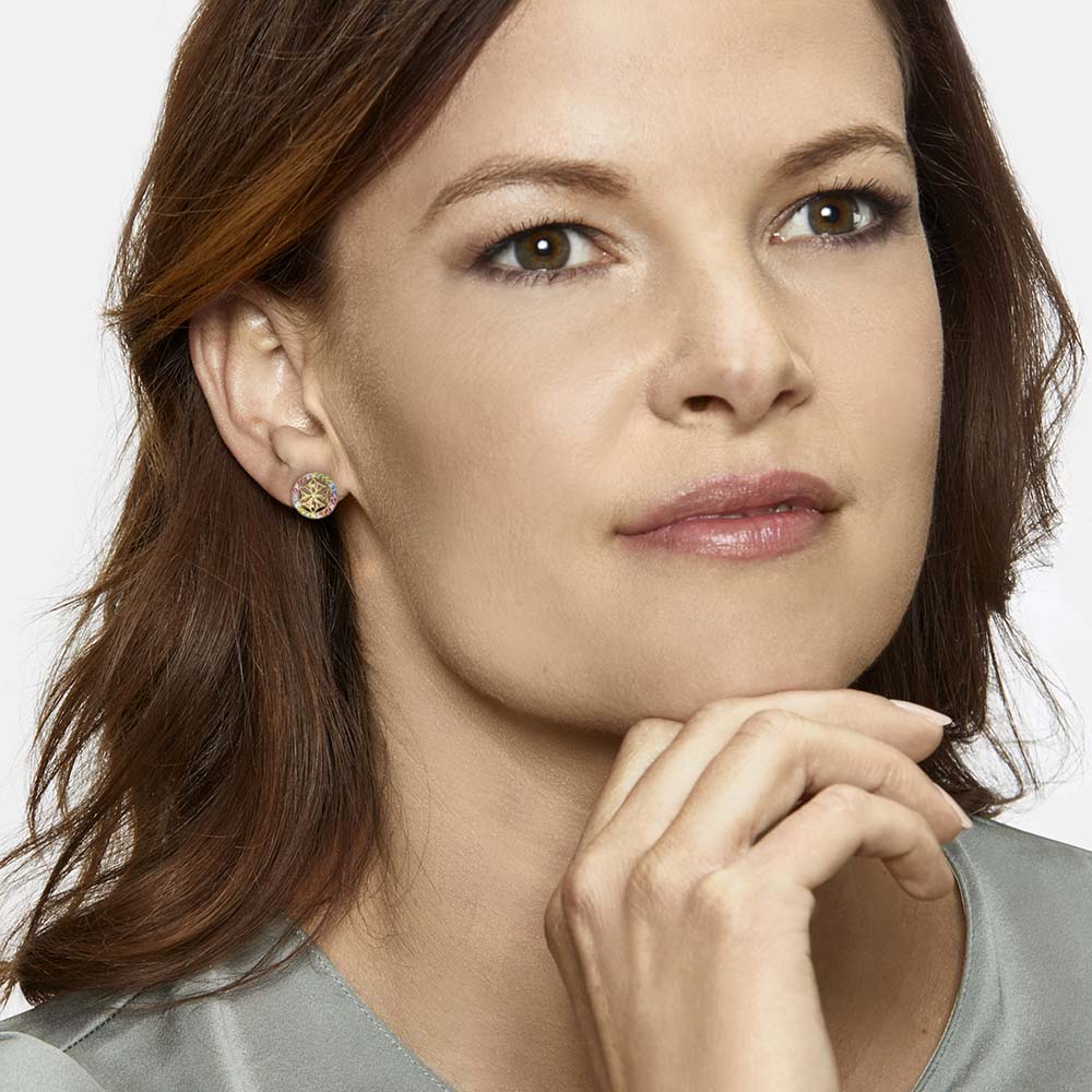 Ein besonderes Highlight sind die edel schimmernden synthetischen Zirkonia Steine in Multicolor. Das farbenfrohe Wunder strahlt wie ein Regenbogen umgeben von edlem Gold. Die Ohrringe sind perfekt mit einer Vielzahl unserer Schmuckstücke kombinierbar.
