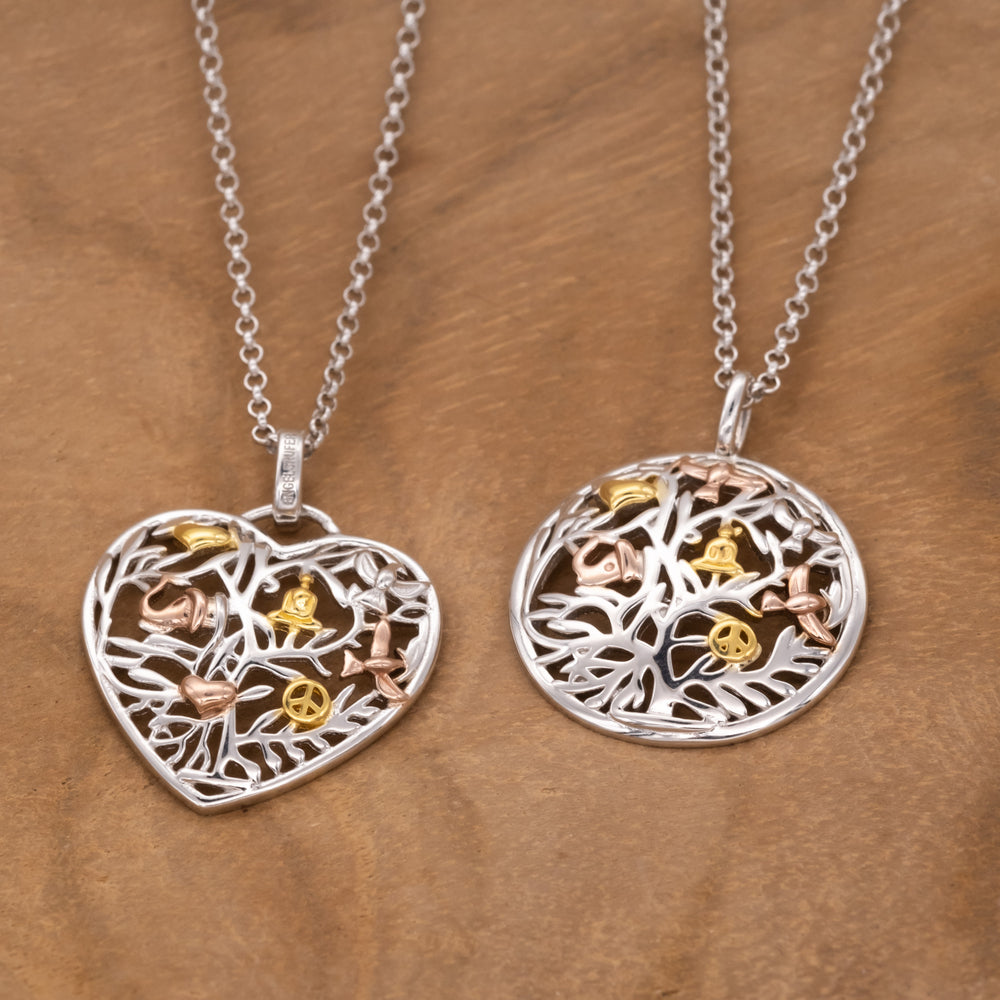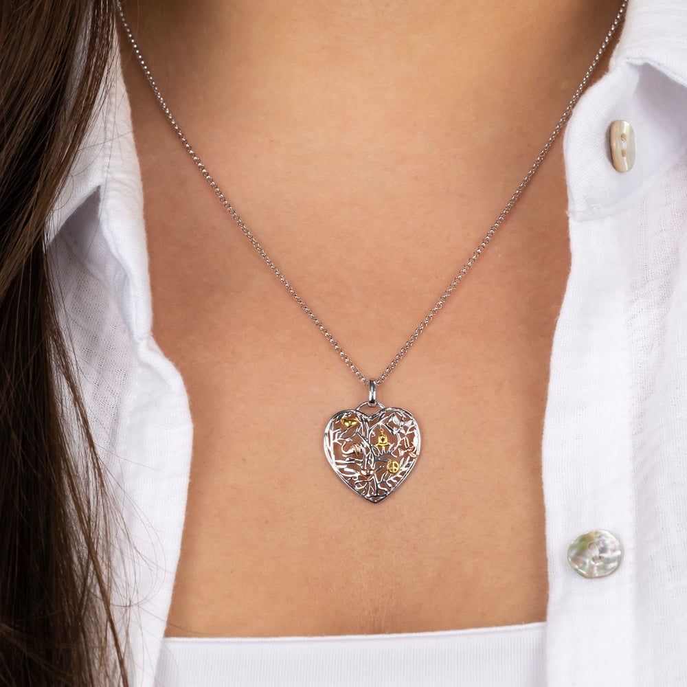 Halskette 925er Silber Lebensbaum Herz Tricolor