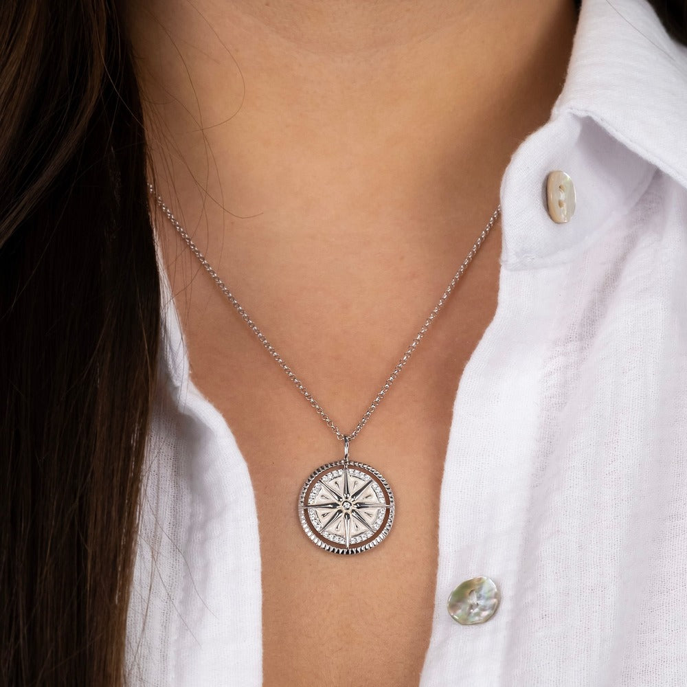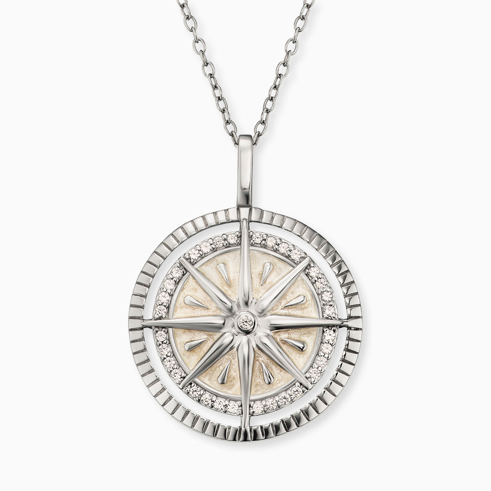 Deine mystische Windrose - unsere strahlende Engelsrufer Kette mit wegweisendem Kompass verzaubert Dich durch die Vielzahl ihrer kleinen Details mit Emaille. Die Windrose zeigt Dir den richtigen Weg und führt Dich an Deine Ziele. Mit ihr verlierst Du nie die Orientierung. Sie schenkt Dir Hoffnung und Schutz. Ein besonderes Highlight sind die edel schimmernden synthetischen Zirkonia Steine. Denn was könnte femininer sein als strahlend schöne Kristalle umgeben von klassischem Silber. Kombiniert mit mehreren Ketten entsteht ein toller Layering-Effekt, der als Duo, Trio oder Quartett eine wunderschöne Symphonie ergibt. Das zeitlose Schmuckstück wird mit einem Karabinerhaken verschlossen und ist in zwei Längen verstellbar.