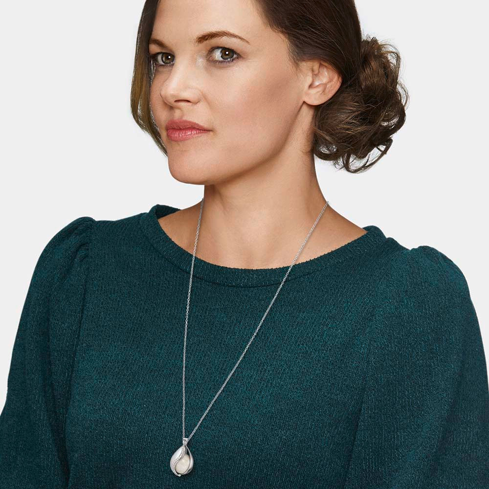 Unsere märchenhaft gestaltete Himmelsträne lässt sich öffnen und verzaubert Dich durch die Vielzahl ihrer kleinen liebevollen Details und Variationsmöglichkeiten. Ein besonderes Highlight sind die edel schimmernden synthetischen Zirkonia Steine. Denn was könnte femininer sein als strahlend schöne Kristalle umgeben von klassischem Silber.