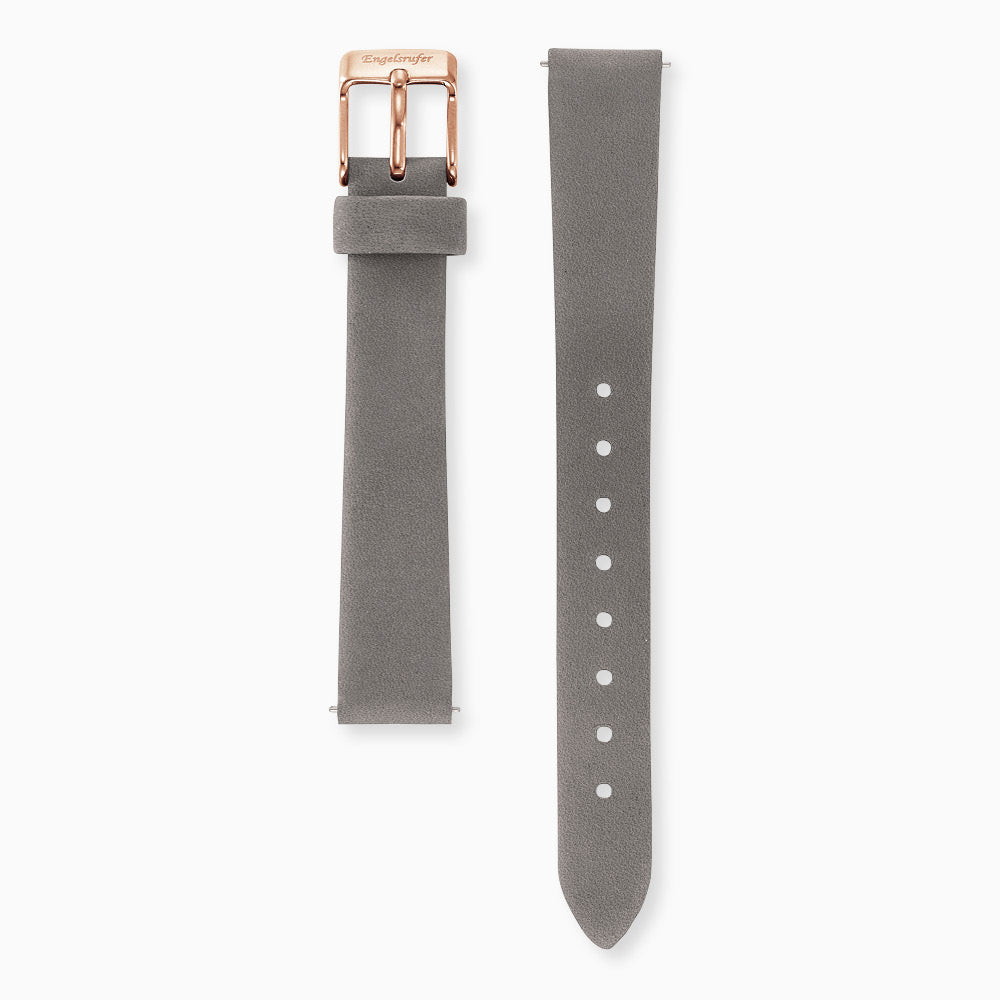 Lederarmband Grau für Uhren mit Edelstahl Verschluss Roségold 14 mm