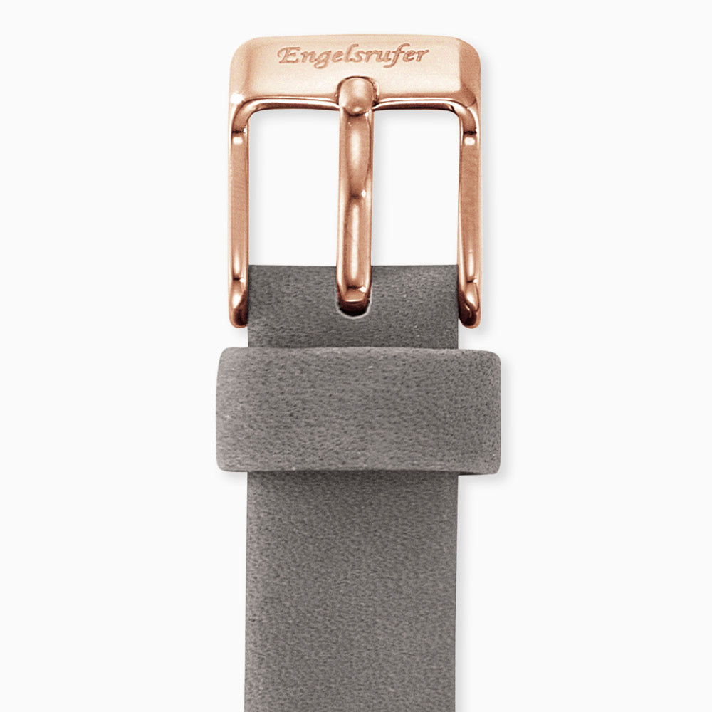 | Material | Edelstahl IP Roségold, Echt-Nubukleder grau |