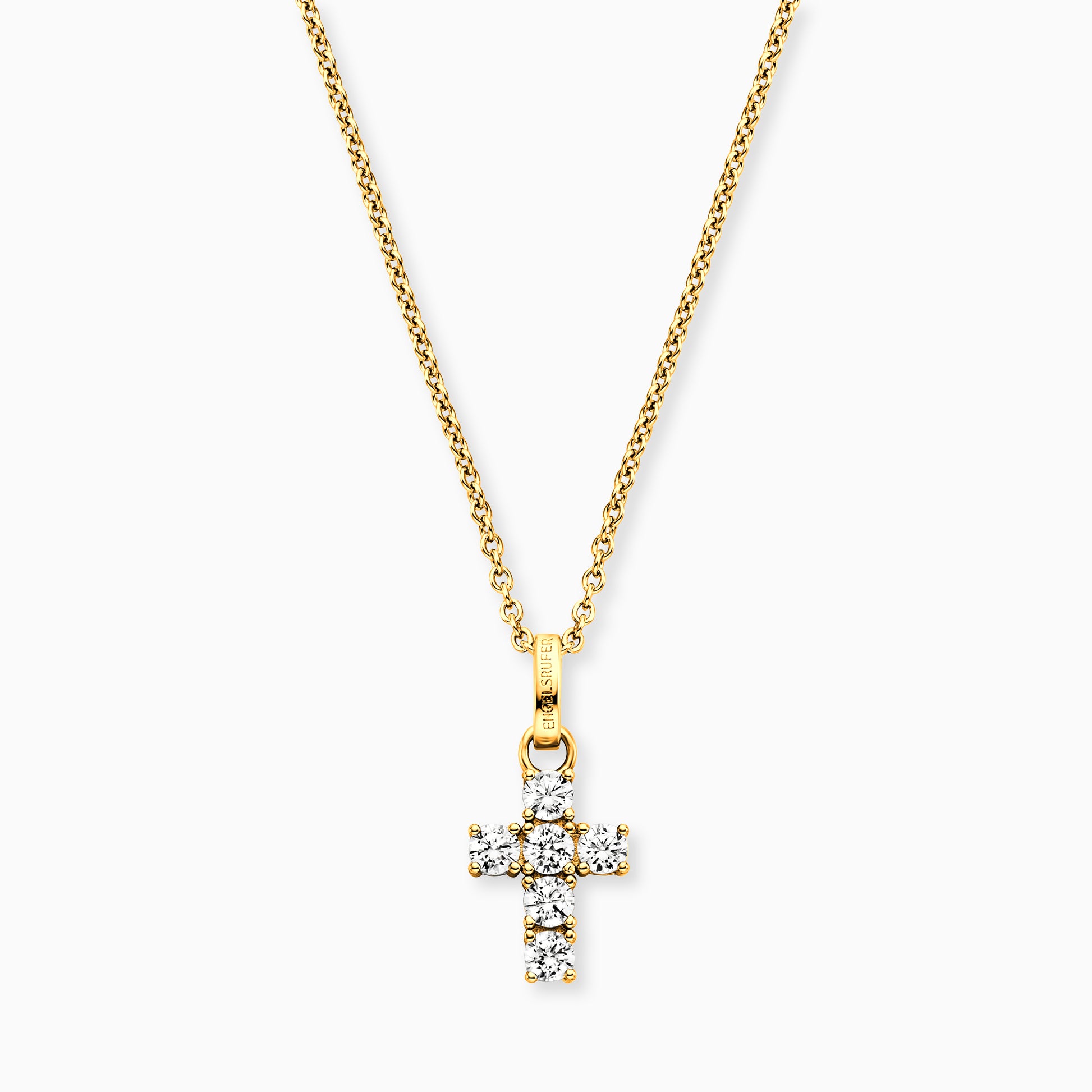 Dein Schutzengel für die Ewigkeit - diese Kette mit Anhänger in Kreuzform bietet die optimale Grundlage für individuelle Gestaltungsmöglichkeiten. Das Kreuz verbreitet Reinheit und bezaubert mit seiner positiven Wirkung. Das Schmuckstück überzeugt dabei durch die Vielzahl an kleinen Details und ist ideal mit weiteren Schmuckstücken kombinierbar. Ein besonderes Highlight sind die edel schimmernden synthetischen Zirkonia Steine. Die vergoldete Kette ist ein absoluter Hingucker und lässt sich wunderbar kombinieren. Sie unterstreicht Deine natürliche Schönheit und Weiblichkeit. Das zeitlose Schmuckstück wird mit einem Karabinerhaken verschlossen und ist in drei Längen verstellbar.