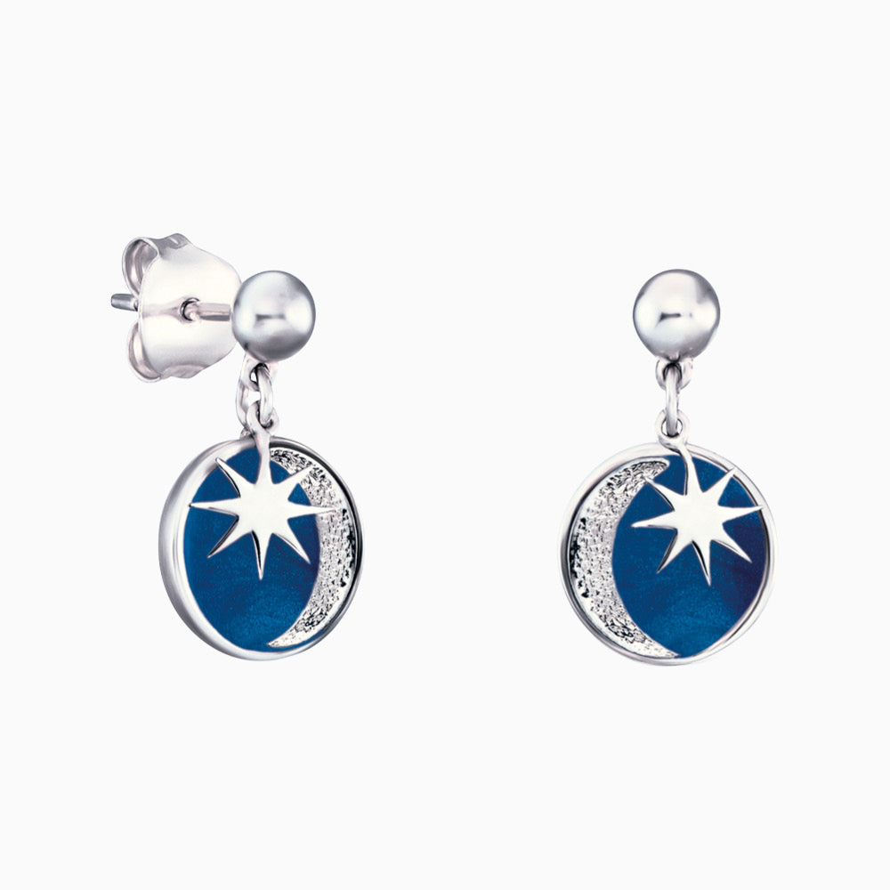 Moonlight Glam – hell am Himmelszelt funkeln die Sterne und der Mond scheint klar. Unsere wundervollen Engelsrufer Ohrringe zeigen Dir, gebettet auf perlmutt blauem Emaille, wie die Sterne funkeln. Die fein gestalteten Ohrringe sind ein absoluter Hingucker und lassen sich wunderbar mit Deinen anderen Schmuckstücken kombinieren. Sie unterstreichen Deine natürliche Schönheit und Weiblichkeit. Engelsrufer verwendet für seine Schmuckstücke die hochwertigste Legierung 925er Sterlingsilber. Das als weitere Veredelung verwendete Rhodium dient dem angenehmen Tragekomfort und schützt es vor dem Anlaufen. Alle Schmuckstücke sind nickelfrei und somit auch für Allergiker hervorragend geeignet.